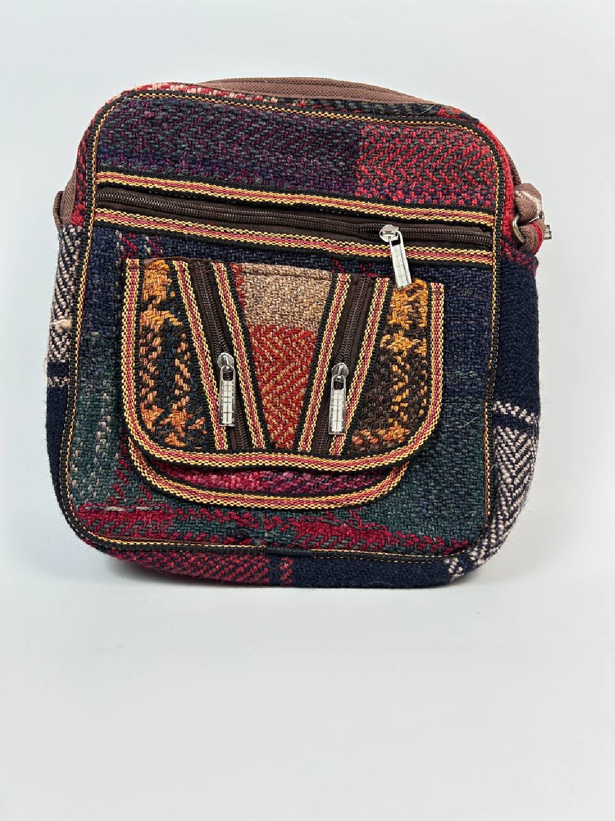 Our exquisite hand-knotted crossbody, a true masterpiece of artistry and style! Each bag is a one-of-a-kind creation, bursting with vibrant colors that will make you stand out from the crowd. Crafted from natural wool, this bag is not only visually stunning but also incredibly durable. It features two extra small front pockets for your convenience and an adjustable strap for a perfect fit. Own a bag that's as unique as you are and enjoy its beauty and functionality every day!